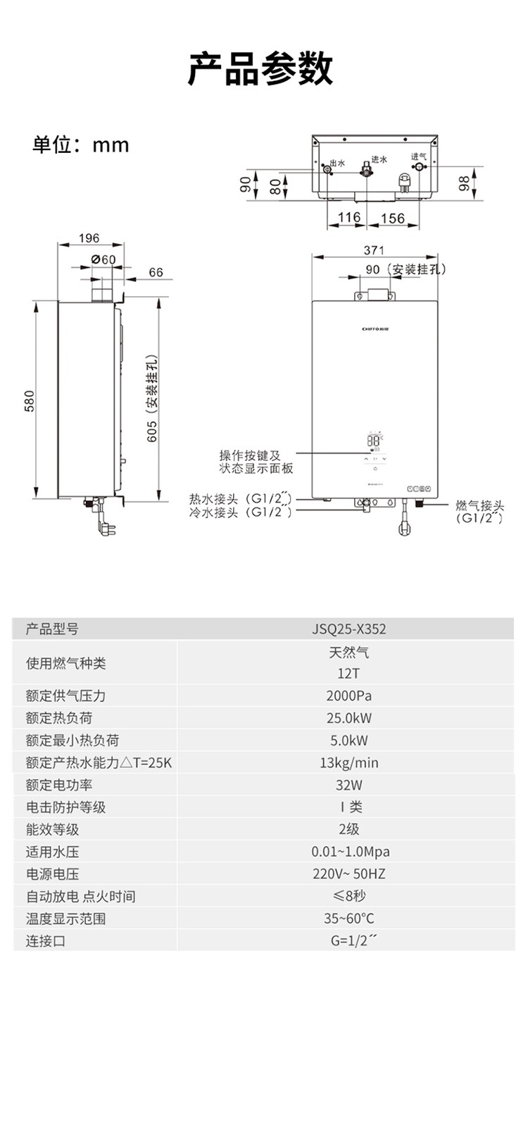 前锋恒温燃气热水器X352
